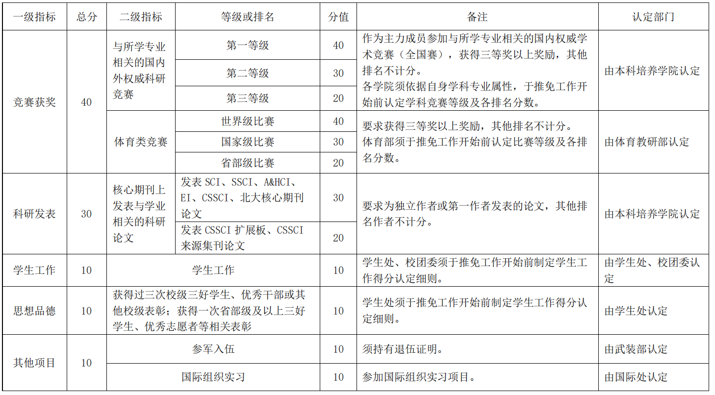 综合素质分为百分制,综合素质评价指标体系详见附件 1。