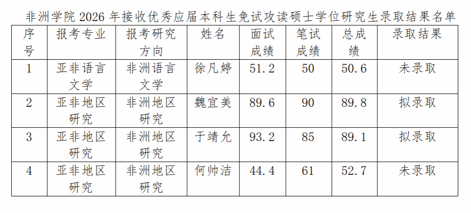 根据bw必威西汉姆联官网研究生院规定,现将bw必威西汉姆联官网2026年接收优秀应届本科生免试攻读硕士学位研究生录取结果名单公布如下。