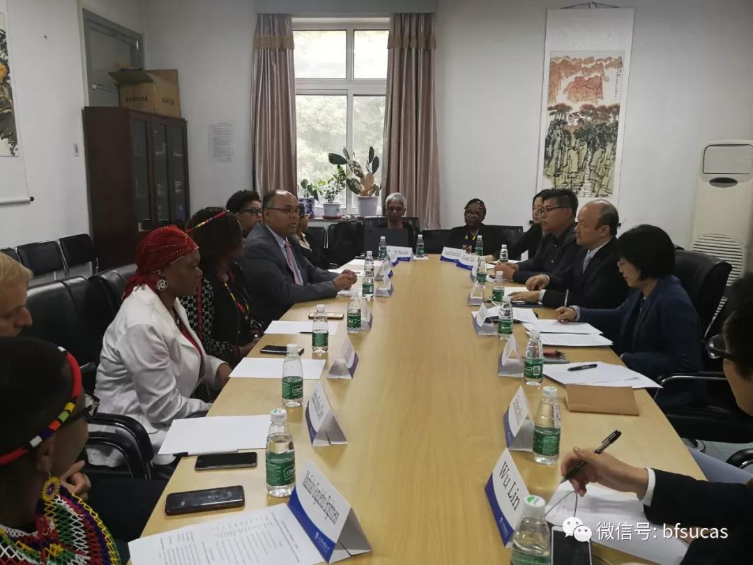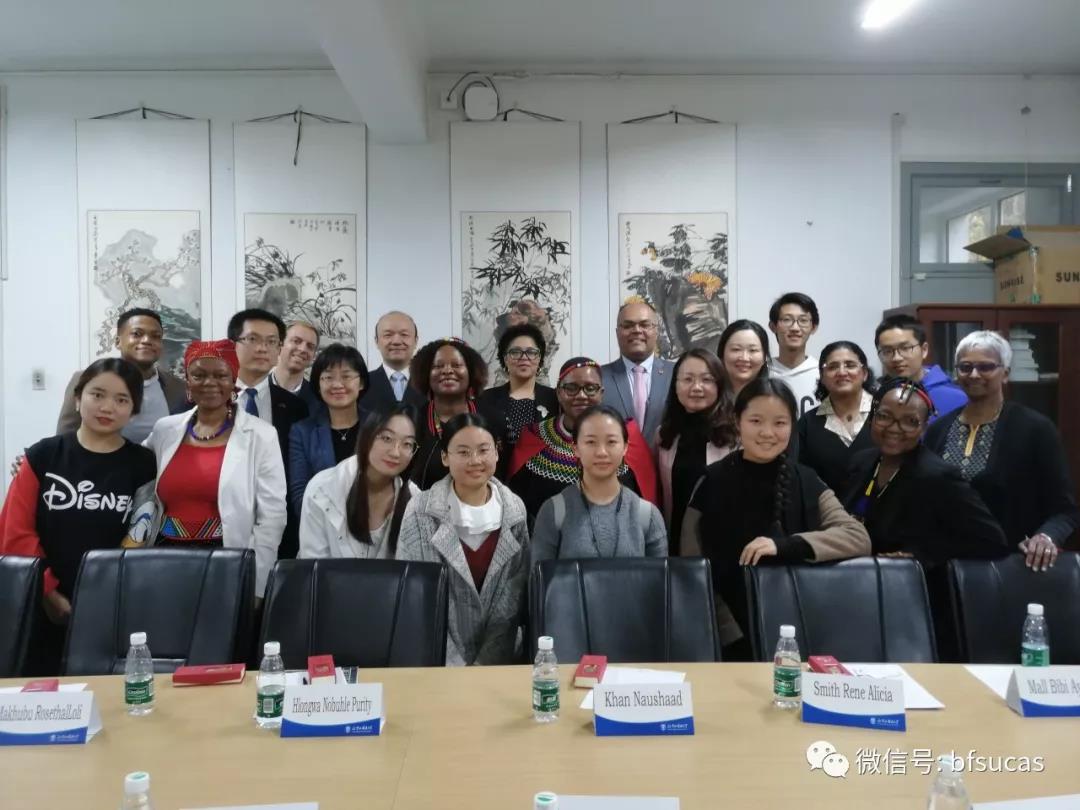 10月22日,南非夸祖鲁-纳塔尔大学(University of KwaZulu-Natal)及德班理工大学(Durban University of Technology)教育代表团一行10人到访bw必威西汉姆联官网,与公司就员工交流、团队派遣、非洲语言教材与辞典编纂,以及非洲研究学术交流合作等事宜举行会谈。