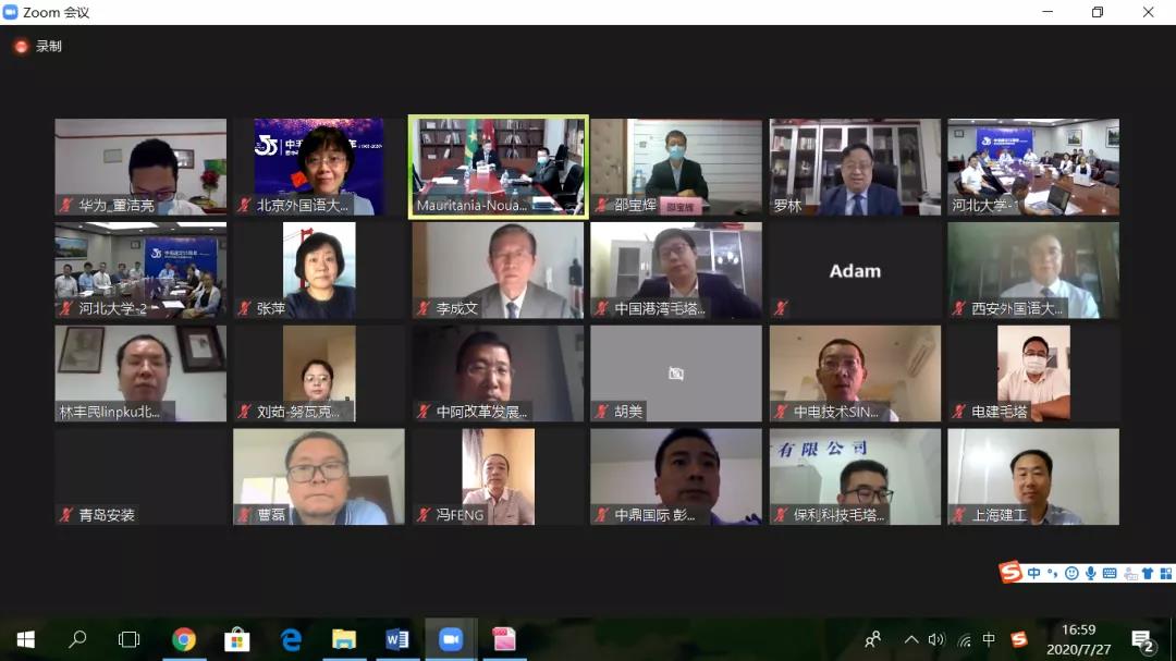 2020年7月27日,为庆祝中国和毛里塔尼亚建交55周年,中国驻毛塔使馆与河北大学联合举办中毛建交55周年暨抗疫合作视频研讨会。驻毛塔大使张建国、中阿合作论坛事务大使李成文、河北大学副董事长李金善、教育部高校国别和区域研究工作秘书处主任罗林教授等致辞,河北大学等高校专家学者做主旨发言,多位毛方友好人士发表视频或书面致辞。河北大学部分师生、中国在毛企业和侨团负责人等近百人参加研讨会。