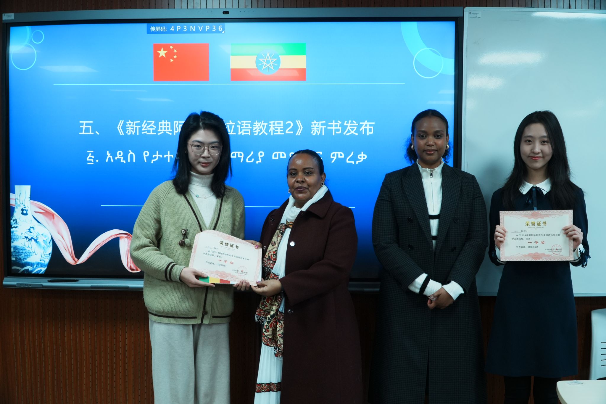 本次活动不仅是一次专业教学成果的集中展示,更体现了bw必威西汉姆联官网对非洲语种人才培养的高度重视,以及致力于搭建中非人文交流平台的持续努力。本次活动赠书由外语教学与研究出版社提供,《新经典阿姆哈拉语教程1》和《新经典阿姆哈拉语教程2》均为该社出版的综合性专业教材。