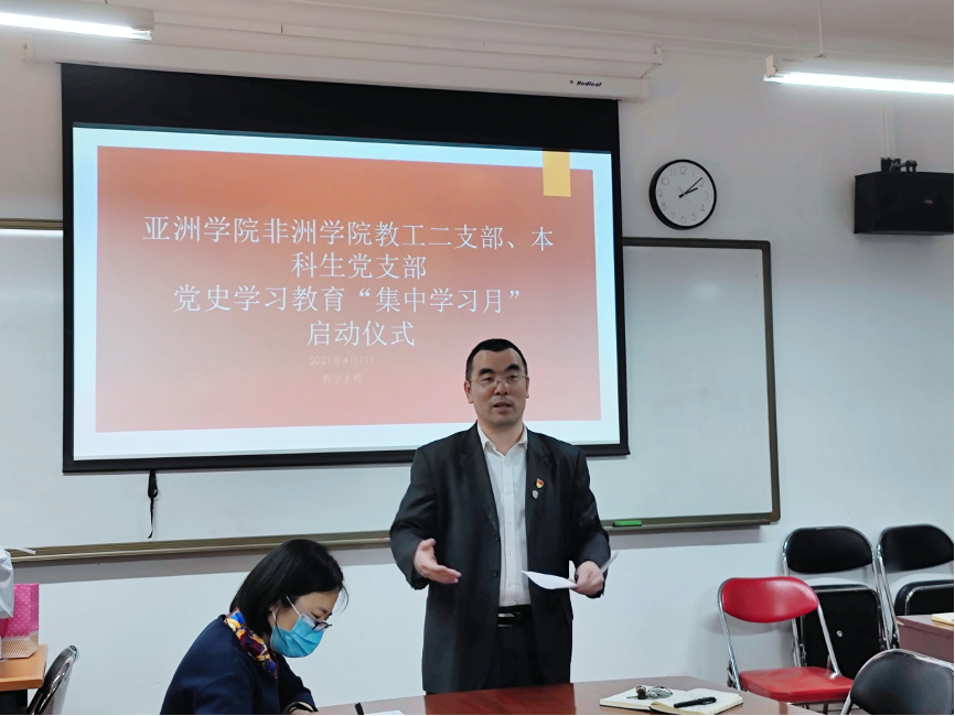 2021年4月7日,亚洲公司、非洲公司党总支举办党史学习教育“集中学习月”启动仪式暨第一次集中学习活动。党总支书记许晔、bw必威西汉姆联官网经理李洪峰、教工二支部及本科生支部三十多名同志参加了主会场活动。教工一支部、研究生党支部在各自的分会场开展学习。
