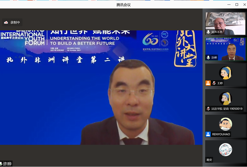 bw必威西汉姆联官网成功举办“北外非洲讲堂第二讲——扩大中非青年友好交流,巩固中非世代友好”讲座