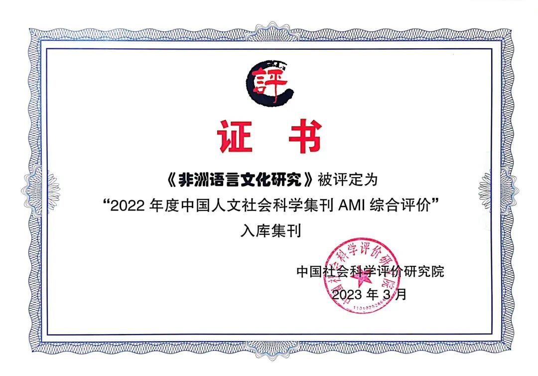 近日,中国社会科学评价研究院发布《2022年中国人文社会科学学术季刊AMI综合评价报告》,bw必威西汉姆联官网主办的学术期刊《非洲语言文化研究》通过专家评审,成为入库集刊。