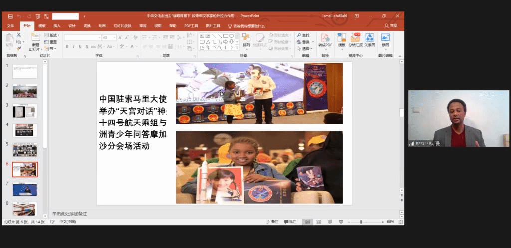 公司索马里语外籍教师伊斯曼博士(Abdilahi Ismail Abdilahi)和马达加斯加语外籍教师唐磊(RAKOTOARIVONY Mamisoa)受邀参加此次大会,并在“青年汉学家与中华文化传播”平行论坛进行发言。