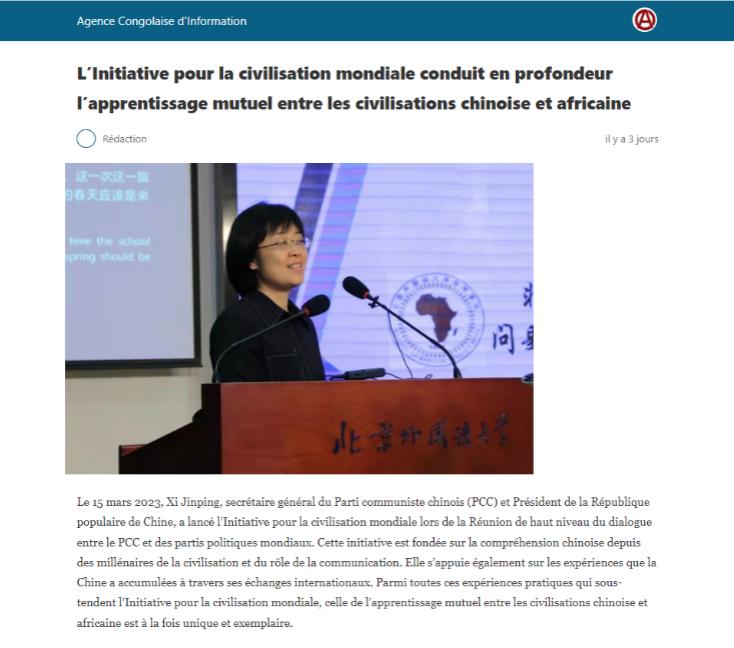 刚果新闻社:https://www.aci.cg/linitiative-pour-la-civilisation-mondiale-conduit-en-profondeur-lapprentissage-mutuel-entre-les-civilisations-chinoise-et-africaine/?amp=1