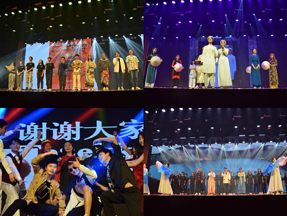 第二环节的开场曲《路之漫漫》更显激昂,亚非韩舞团的热舞将场内气氛推向高潮。20级乌尔都语班、19级20级朝鲜语(商务)/(国际传播)班、19级印地语班的同学们载歌载舞,通过精心编排的节目带领观众们走近风格鲜明的对象国文化。最后,亚非民舞团《不染》轻盈的舞姿、多语种歌曲《Speechless》铿锵的歌声为这一环节画上了圆满句号。