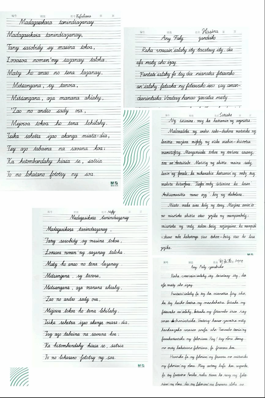 大赛自2021年9月17日启动以来,得到了全体2021级北外马达加斯加语专业新生的大力支持和响应。同学们在课余时间仔细研究临摹书写模板和范例,讨论马达加斯加语的书写方式与技巧,积极创作自己的书法作品。经过一个月的不断练习和改进,截止10月15日,马达加斯加语班全体员工按时提交了自己的参赛作品。